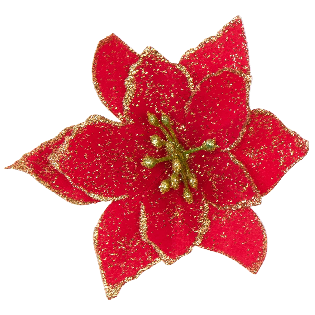[680651] Poinsecja główka czerwona ze złotym brokatem 13cm