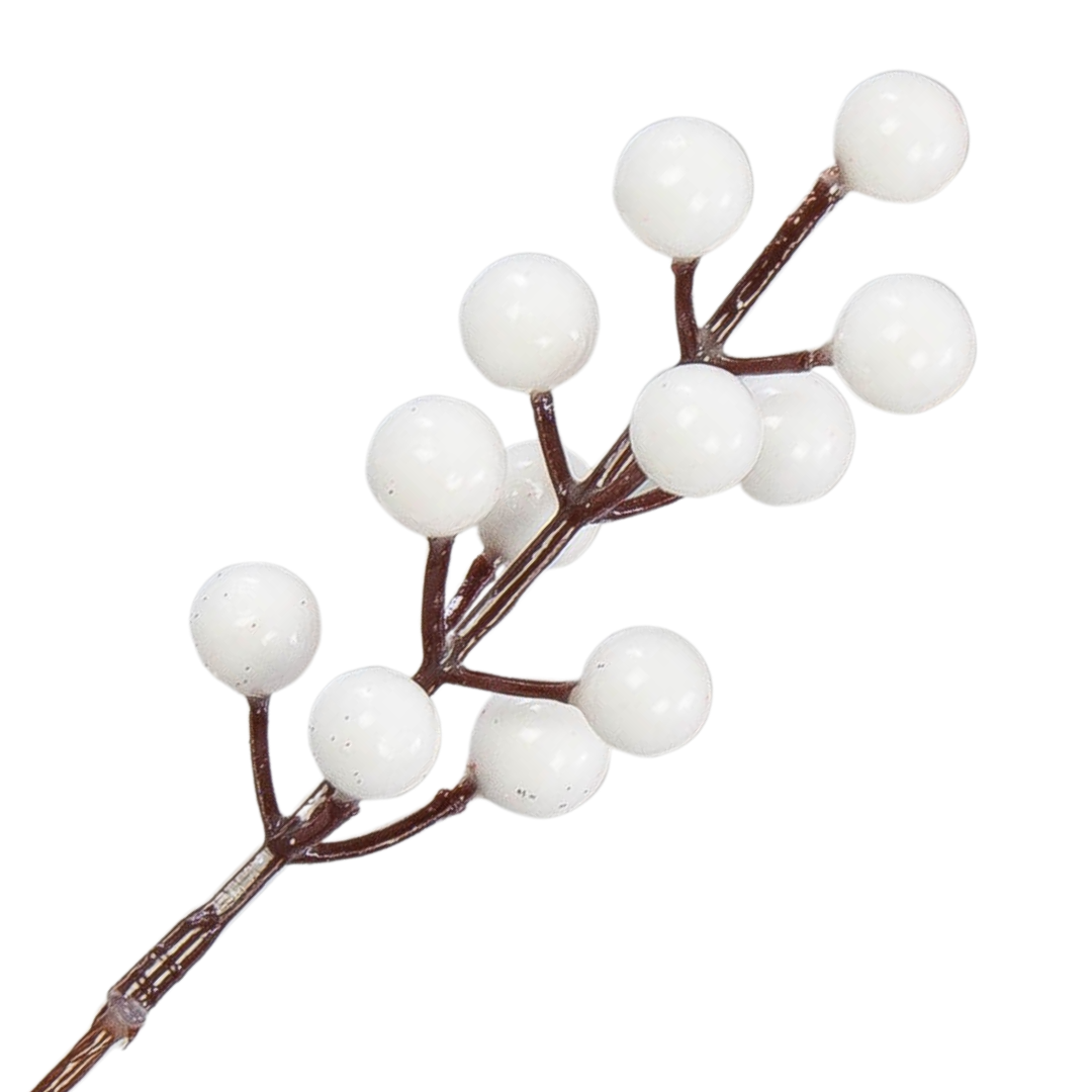 [680672] Gałązka z kuleczkami biała 22cm