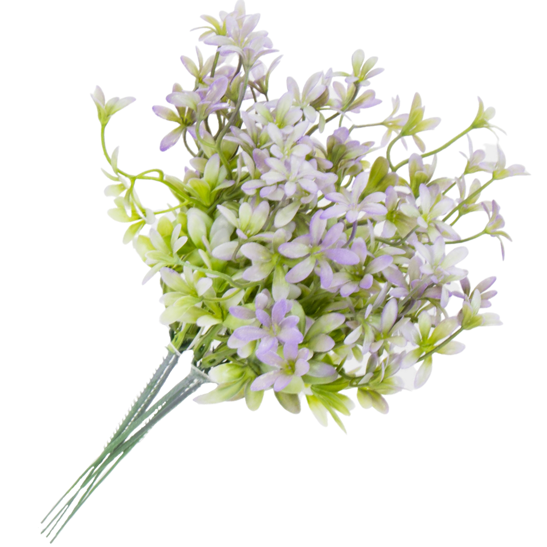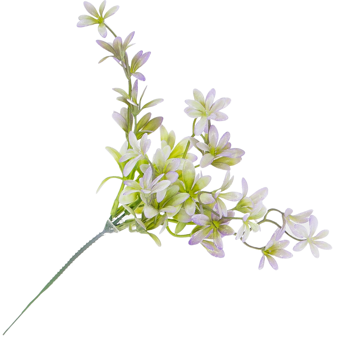 [680775] Gałązka ozdobna kwiatuszki zielono-biało-fioletowe