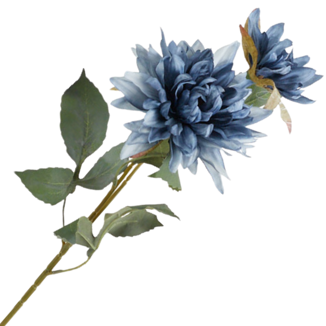[68a10704] Gałązka kwiatowa dalia 63cm dżinsowy
