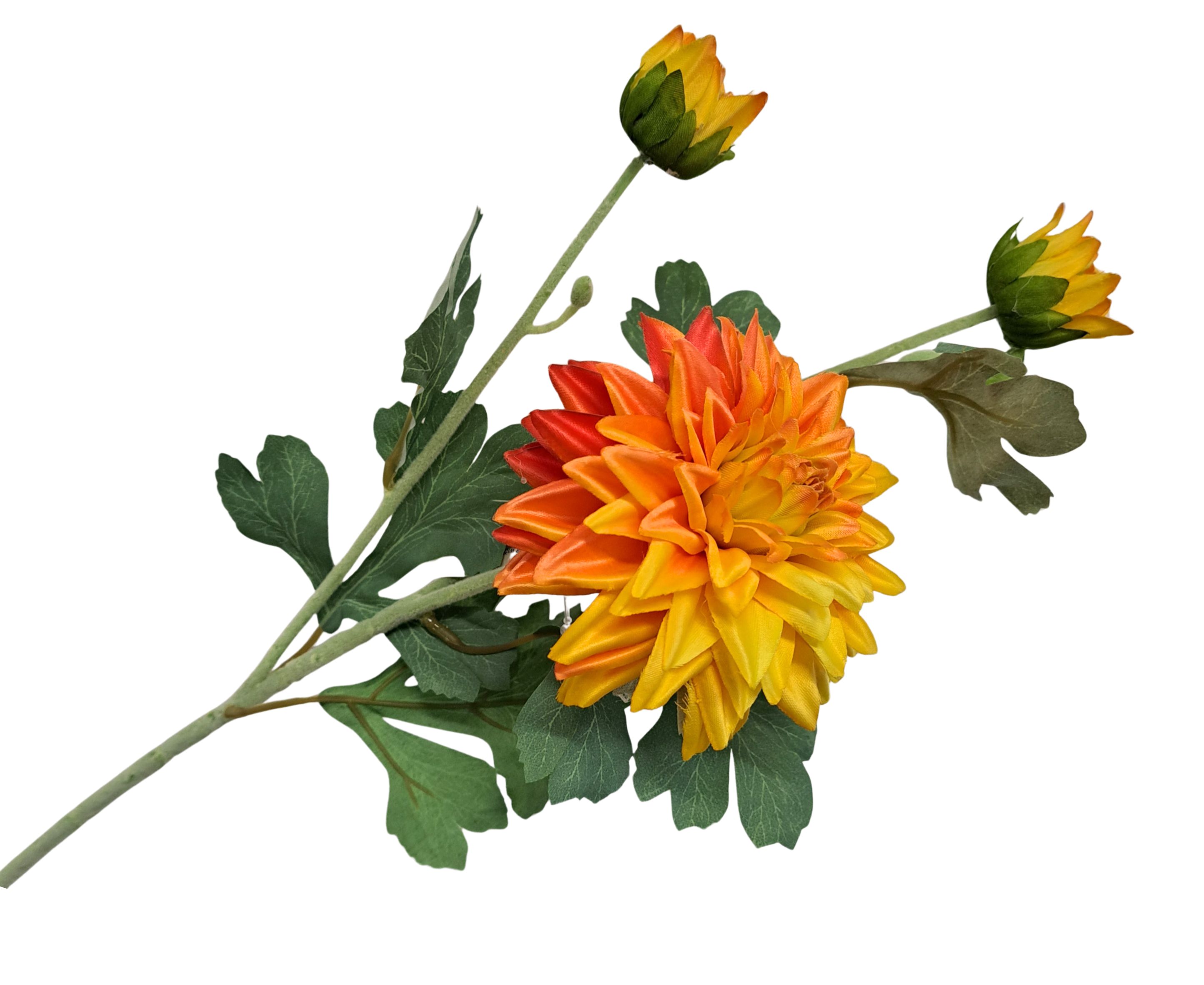 [68tg0605] Gałązka kwiatowa dalia żółto-pomarańczowa 62cm