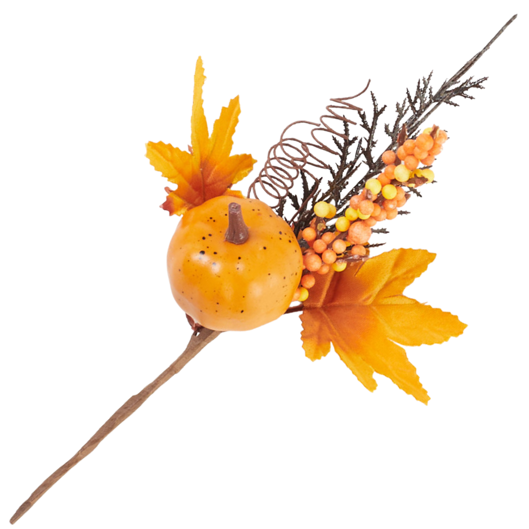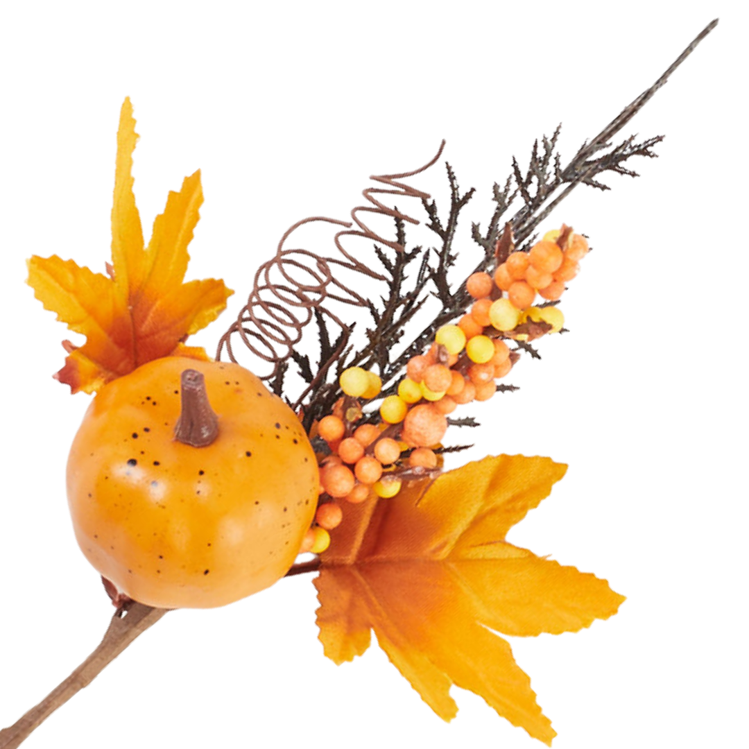 [68xp10101] Gałązka ozdobna jesienna z dynią i liśćmi 19cm