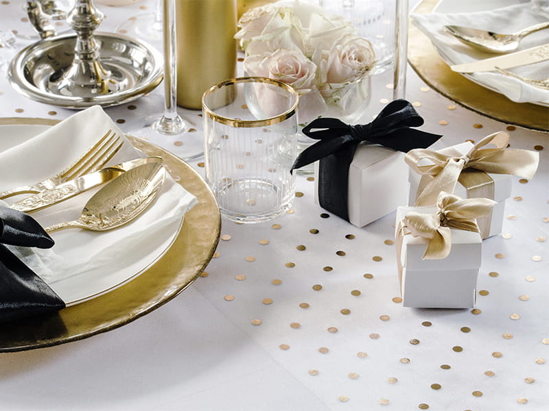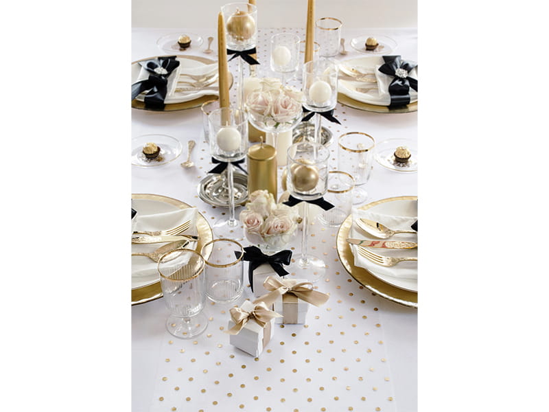 Kolor: Biały, złote kropki