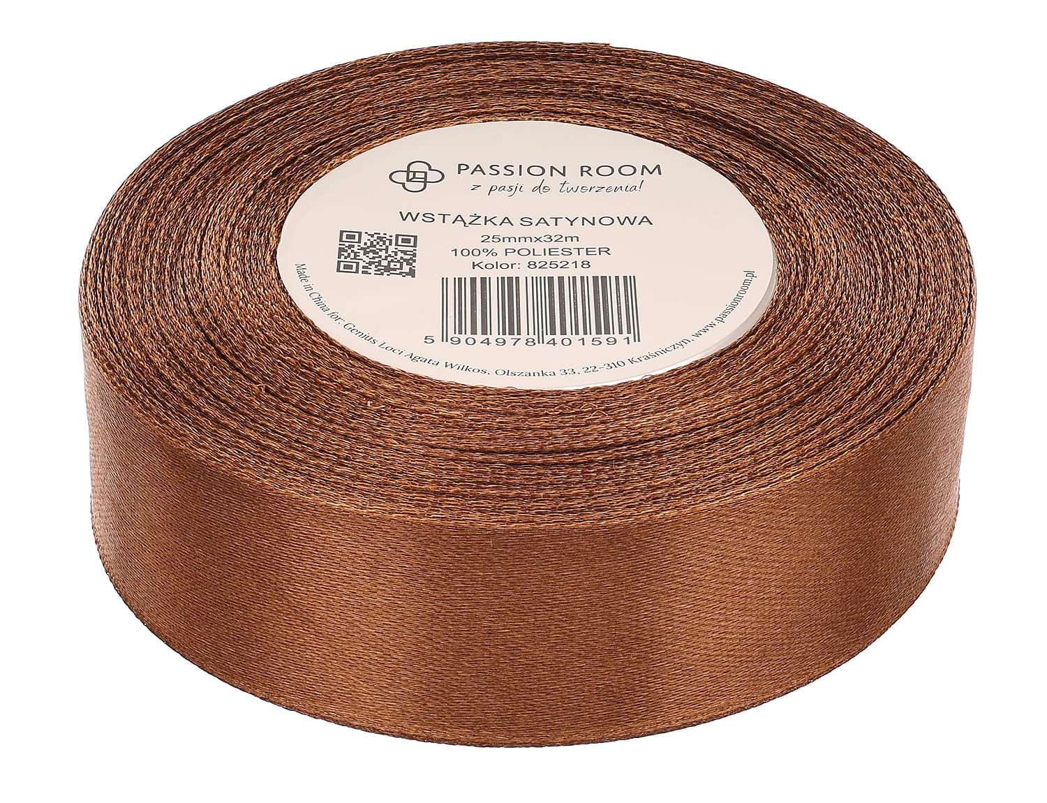 [825218] Wstążka satynowa 25mm 32mb czekoladowa