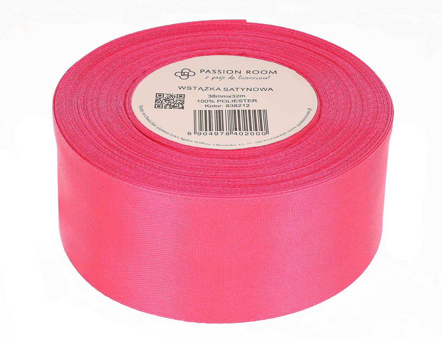 [838212] Wstążka satynowa 38mm 32mb neonowy różowy
