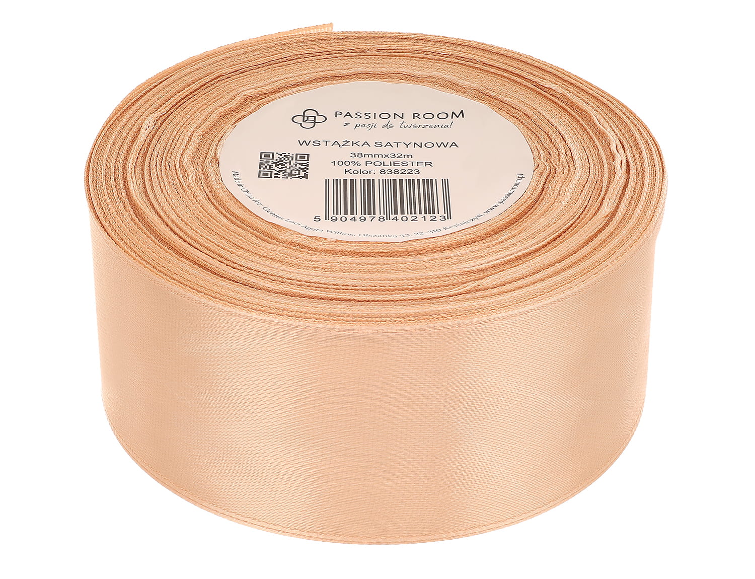 [838223] Wstążka satynowa 38mm 32mb piaskowa