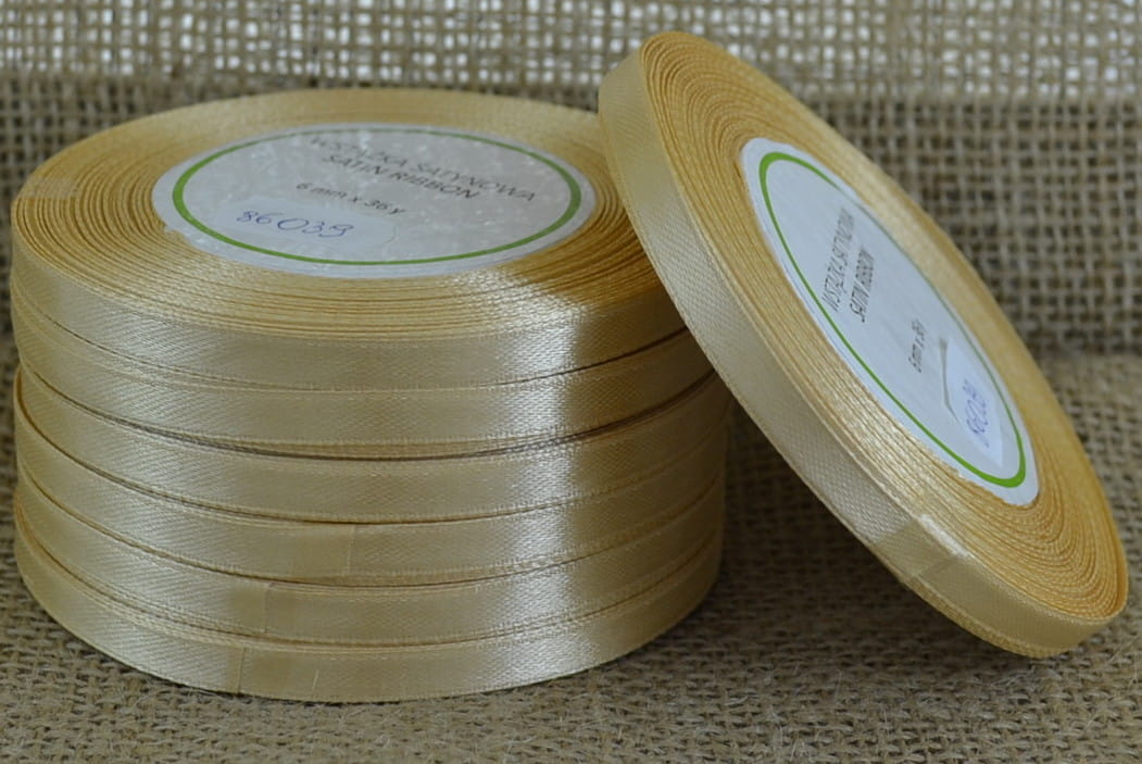[86039] Wstążka satynowa 6mm 32mb bladozłota