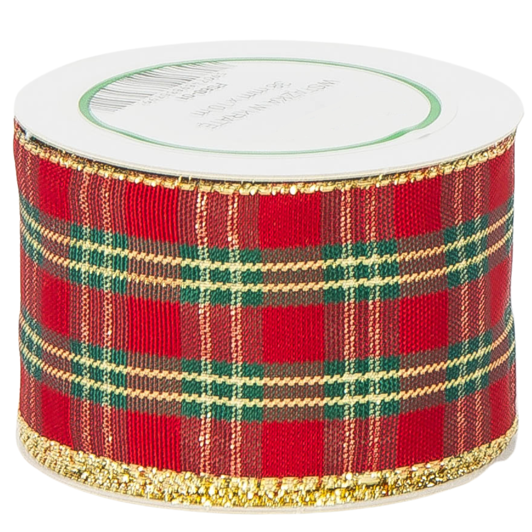 [8bd38001] Wstążka satynowa w brokatową kratkę 38mm 10mb czerwona