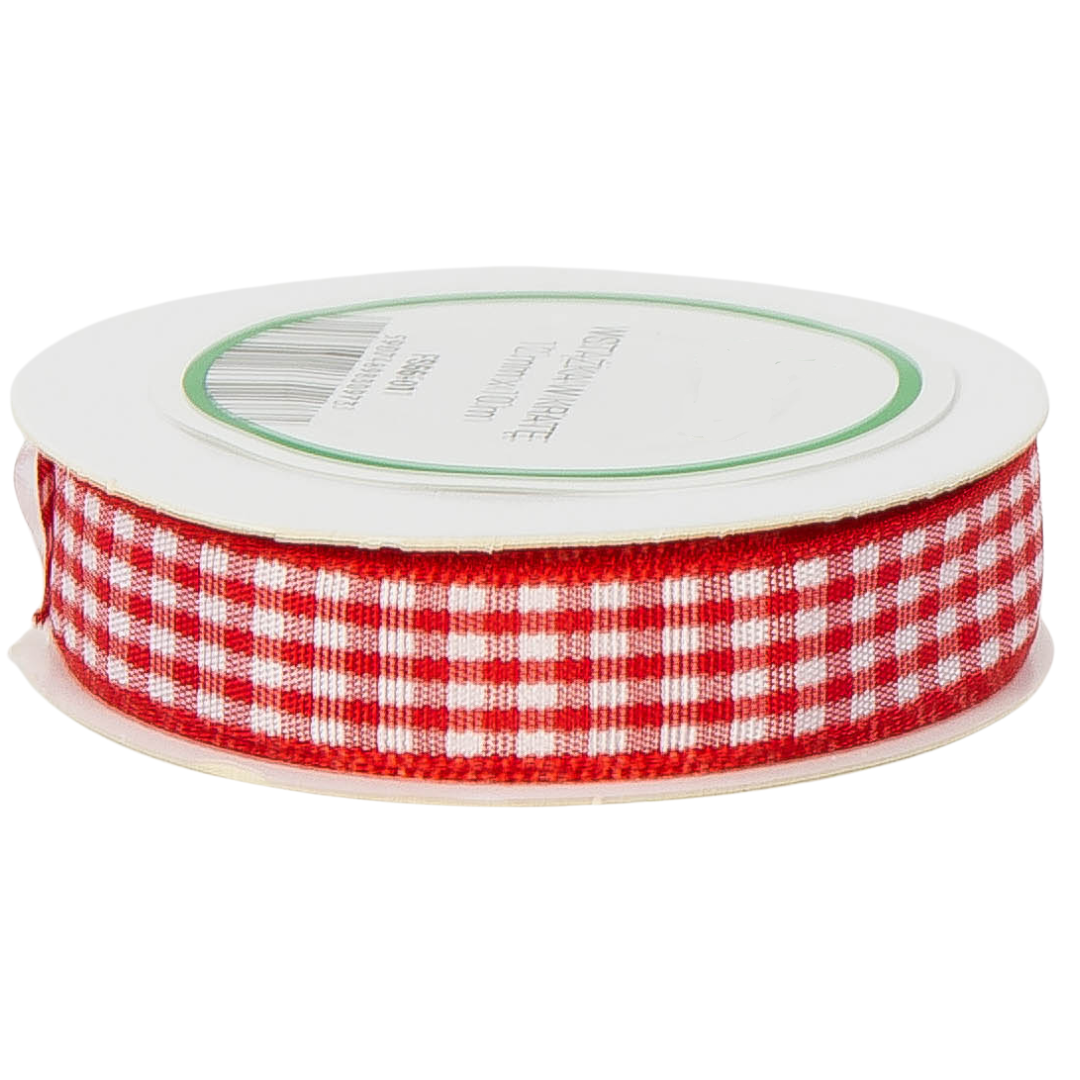 [8d12001] Wstążka w kratkę 12mm 10mb czerwona