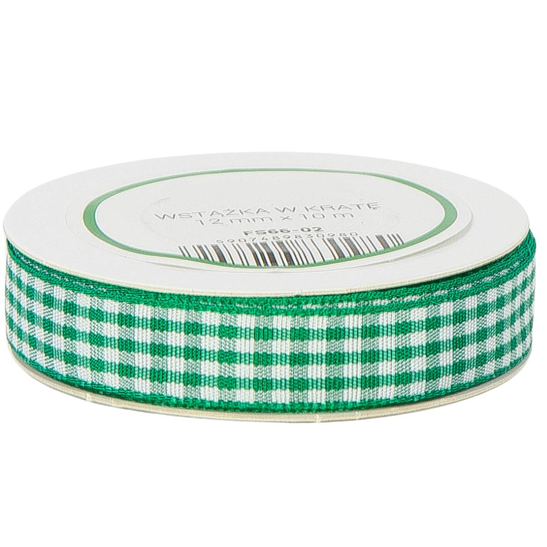[8d12002] Wstążka w kratkę 12mm 10mb zielona