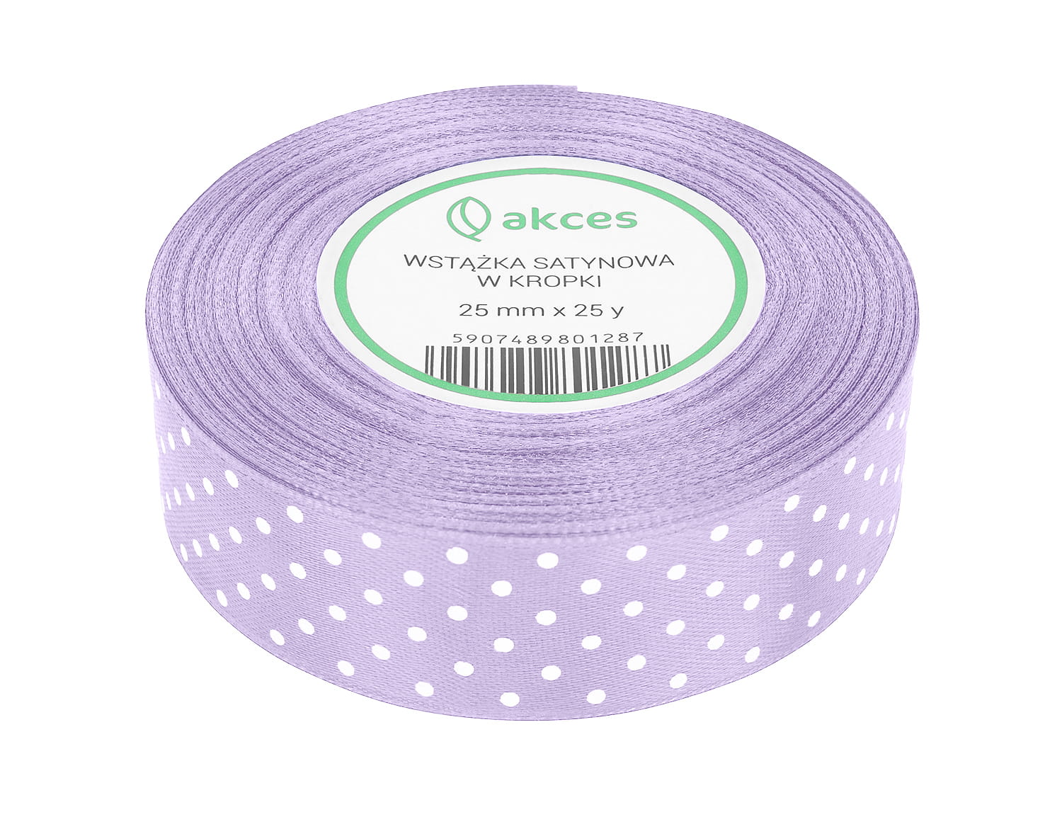 [8k25010] Wstążka satynowa w kropki 25mm lawendowa jasna
