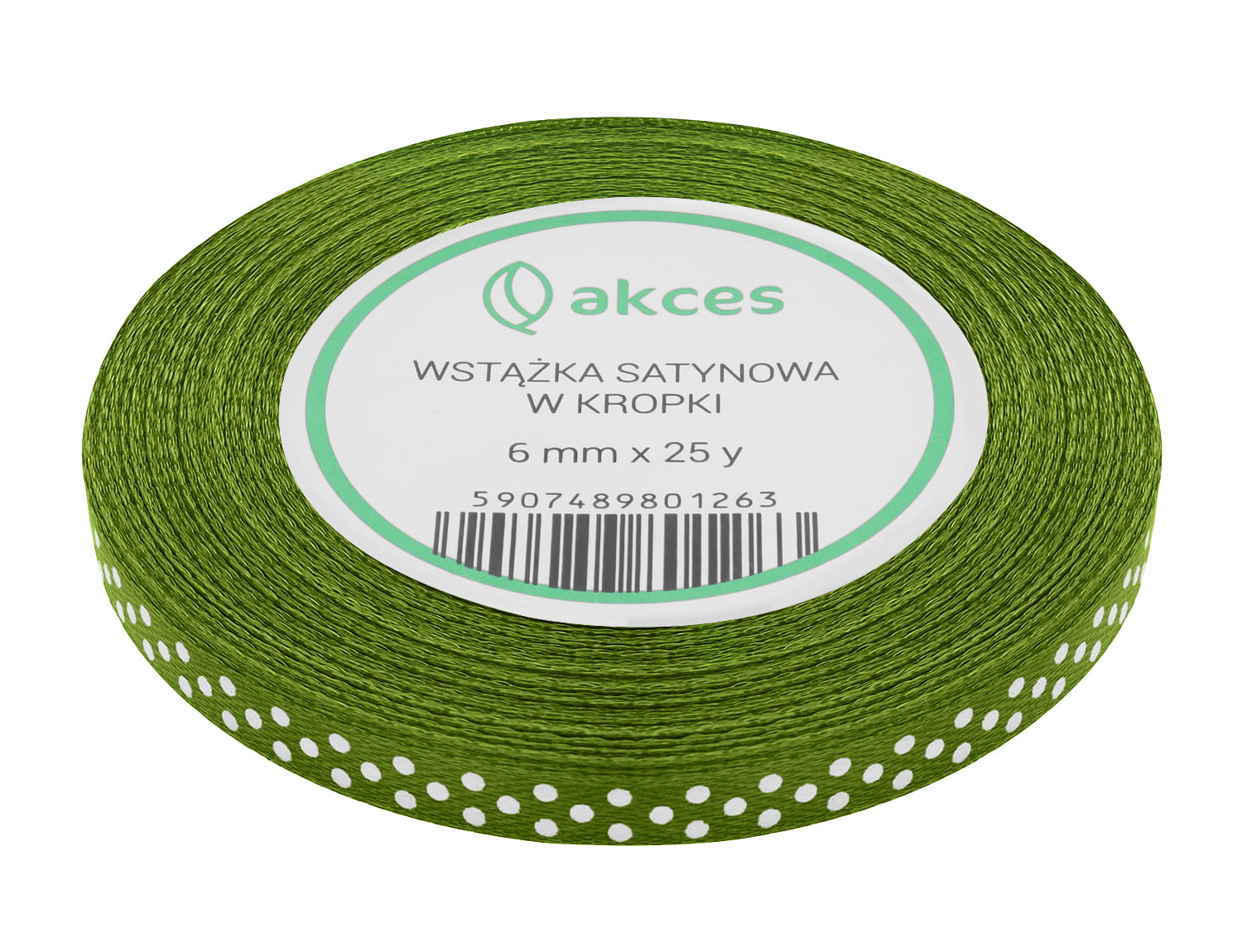 [8k6020] Wstążka satynowa w kropki 6mm 22mb oliwkowa