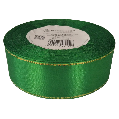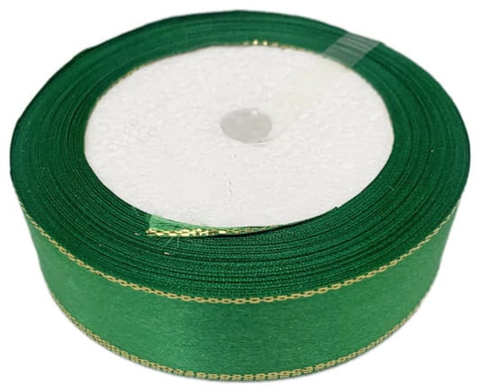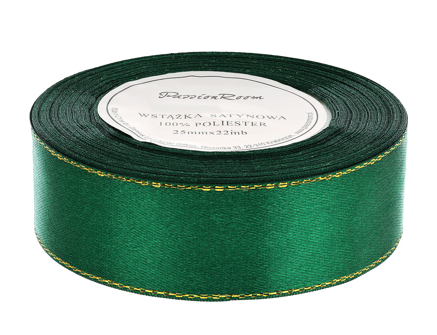 [8z25228] Wstążka satynowa 25mm 22mb zielona ze złotą nitką