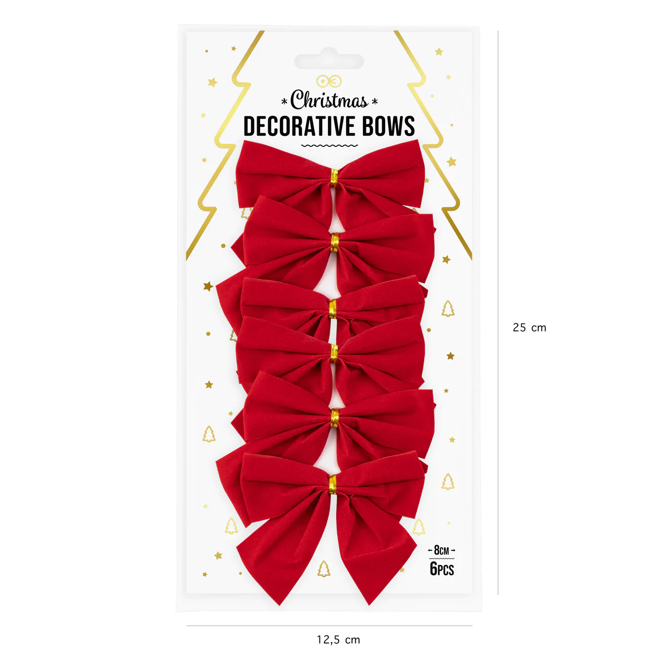 Kokardki dekoracyjne czerwone welurowe 6szt
