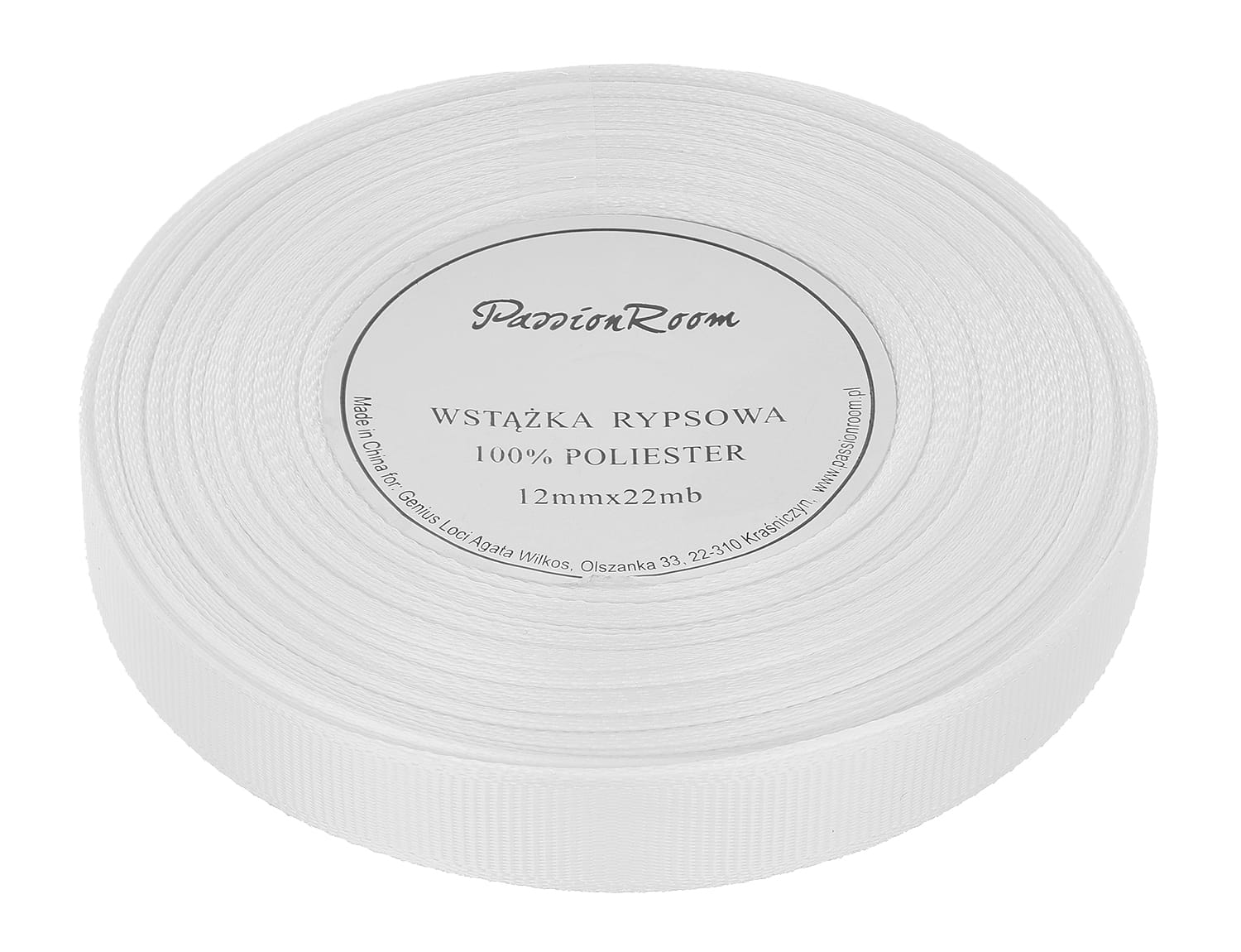 Wstążka rypsowa 12mm 22mb biała