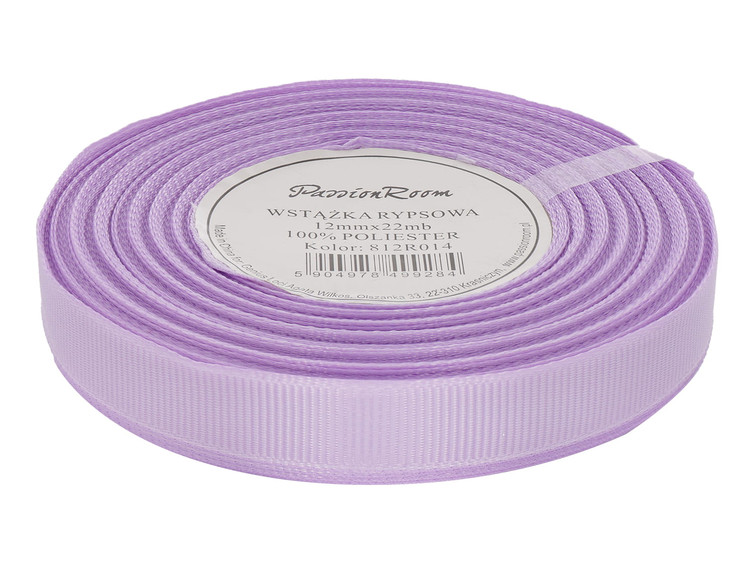 Wstążka rypsowa 12mm 22mb lawendowa