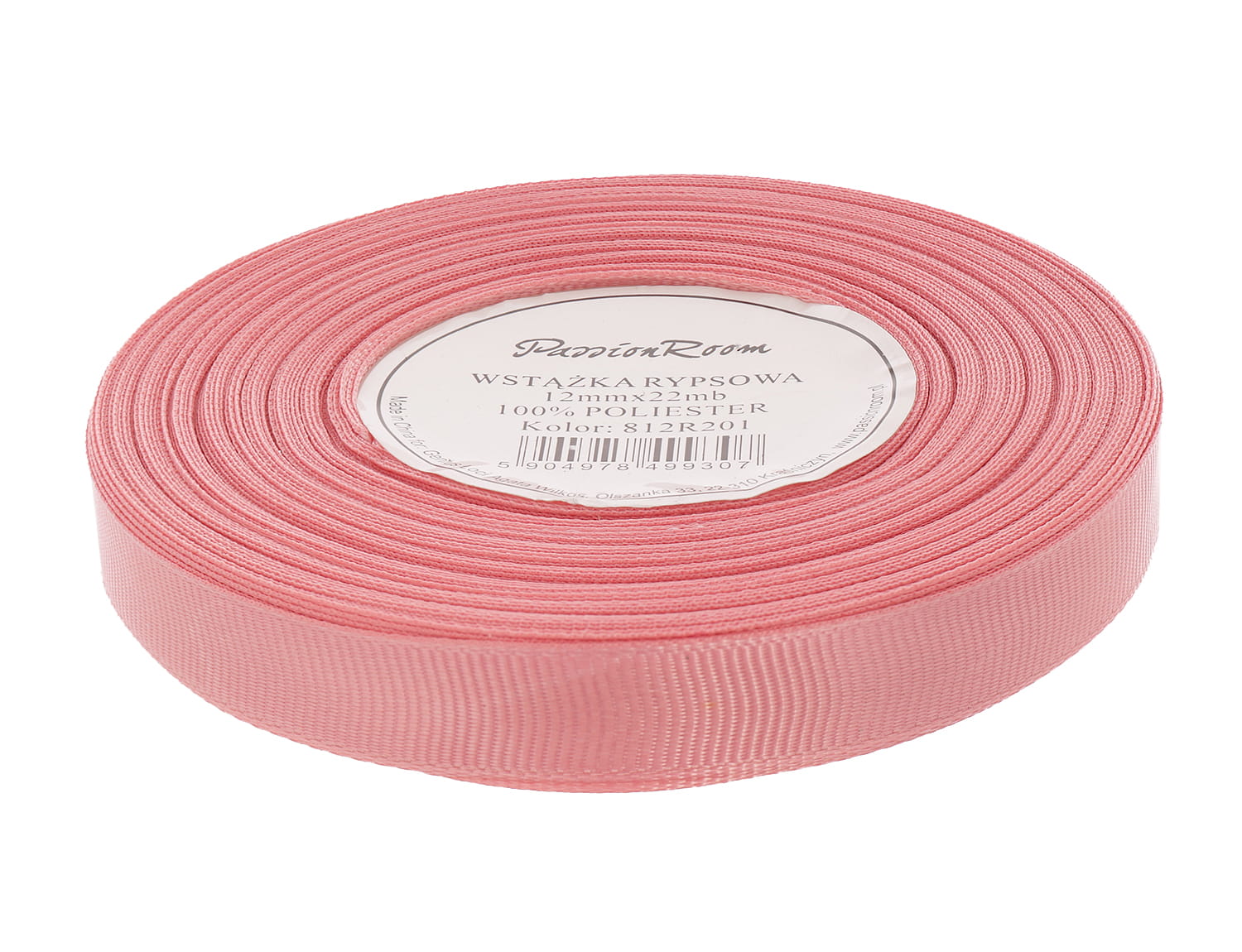 Wstążka rypsowa 12mm 22mb przydymiony różowy