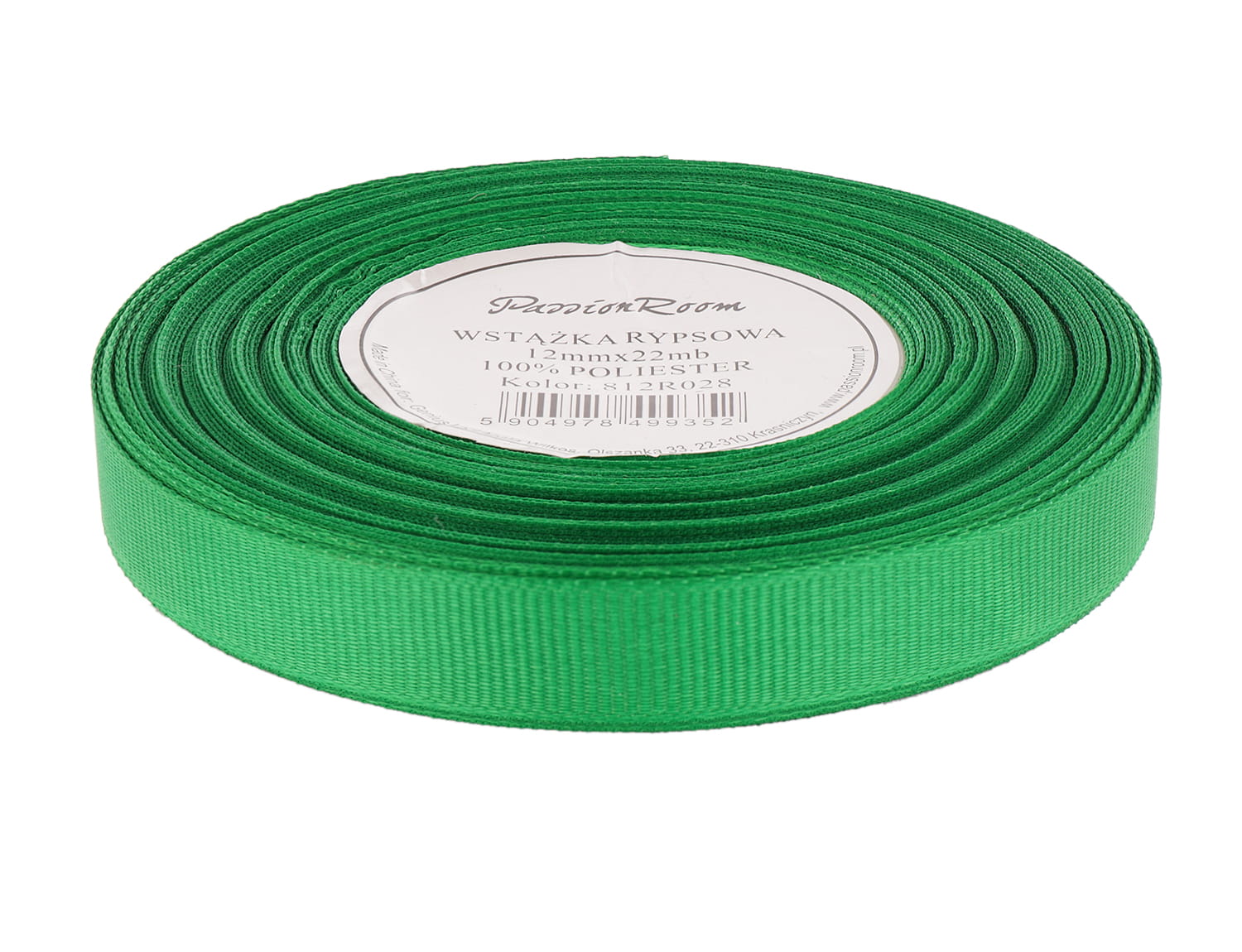 Wstążka rypsowa 12mm 22mb zielona