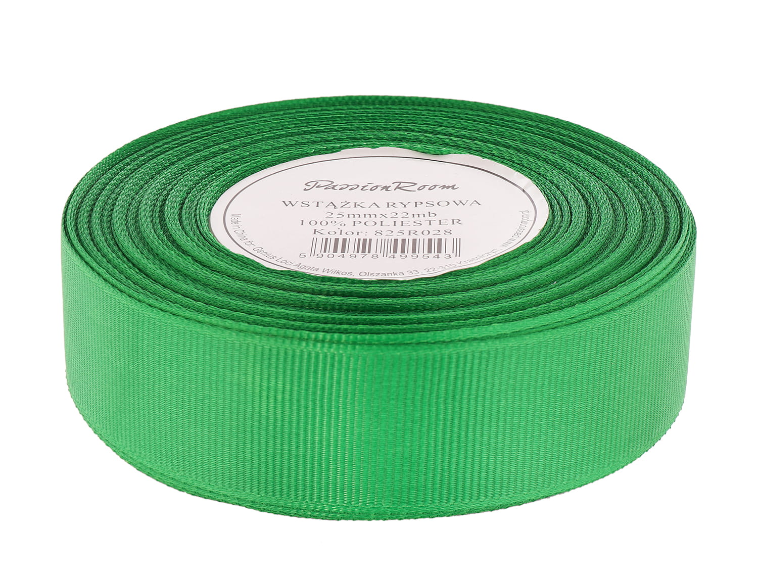 Wstążka rypsowa 25mm 22mb zielona