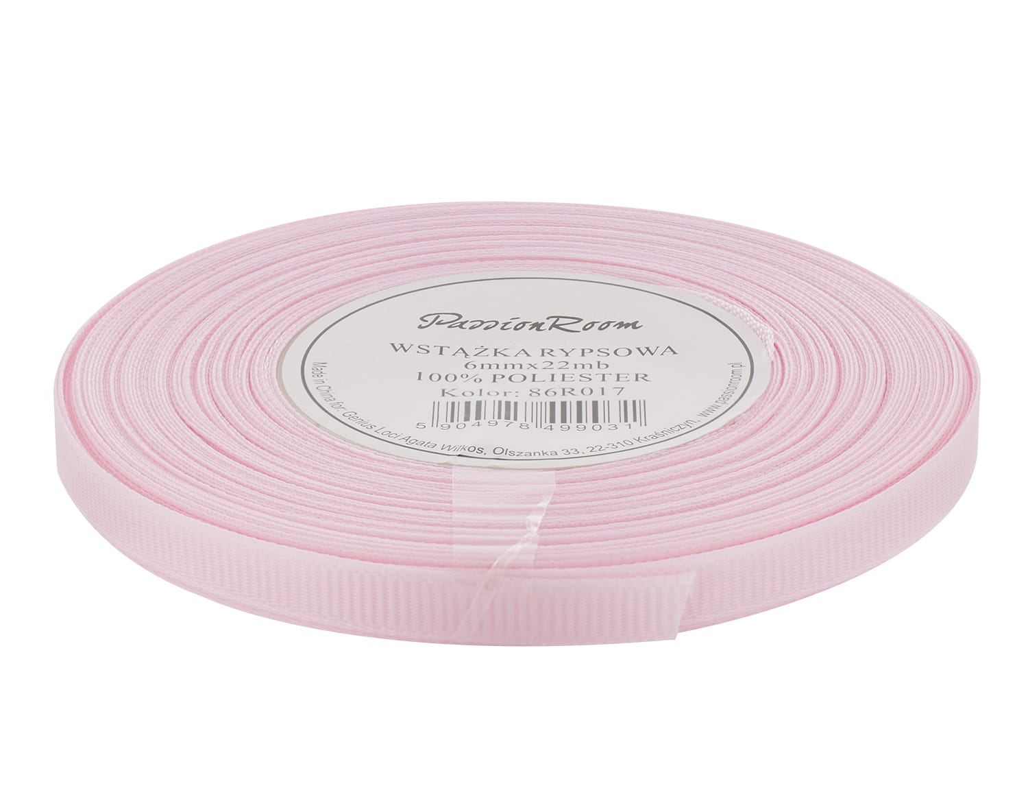 Wstążka rypsowa 6mm 22mb bladoróżowa