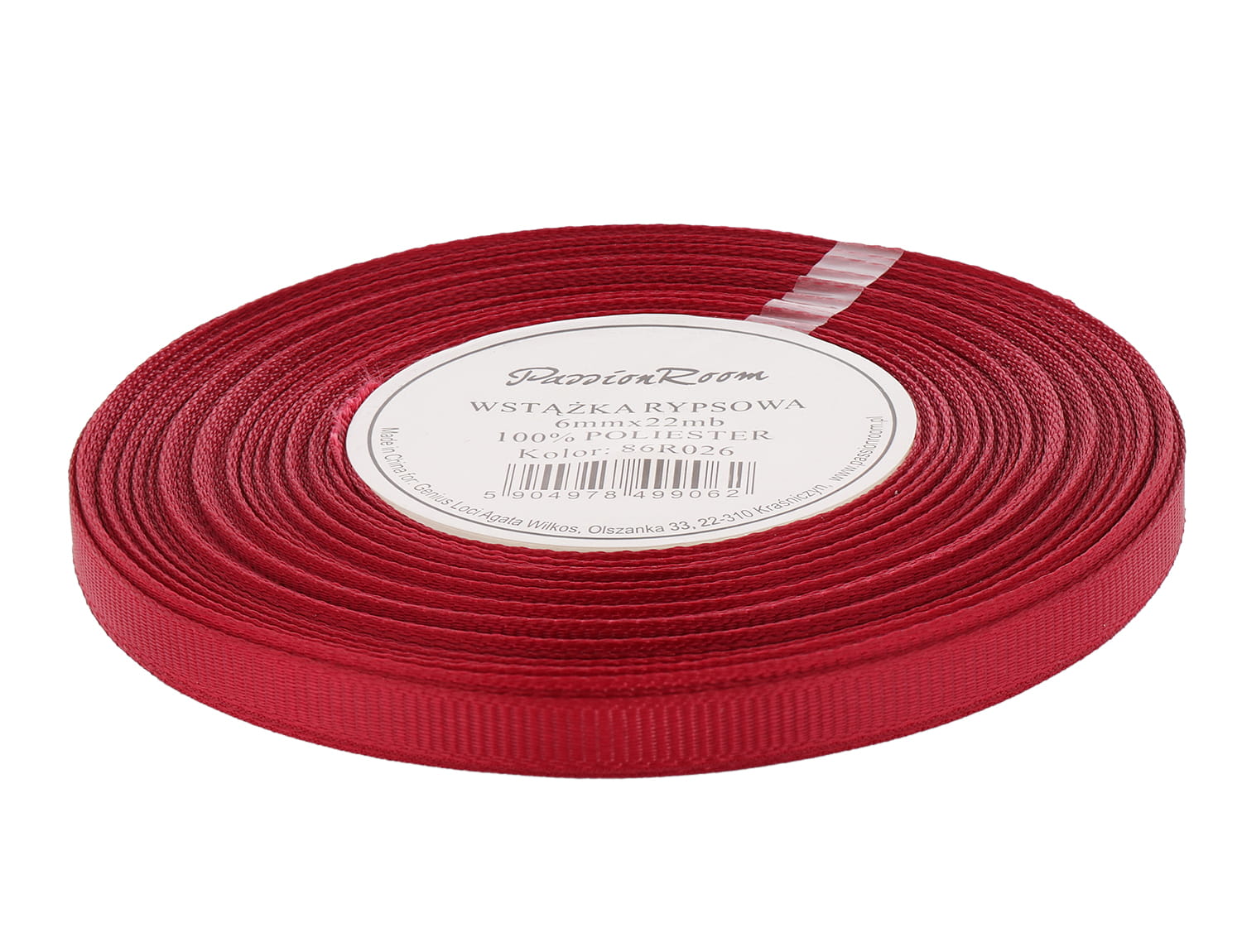 Wstążka rypsowa 6mm 22mb bordowa