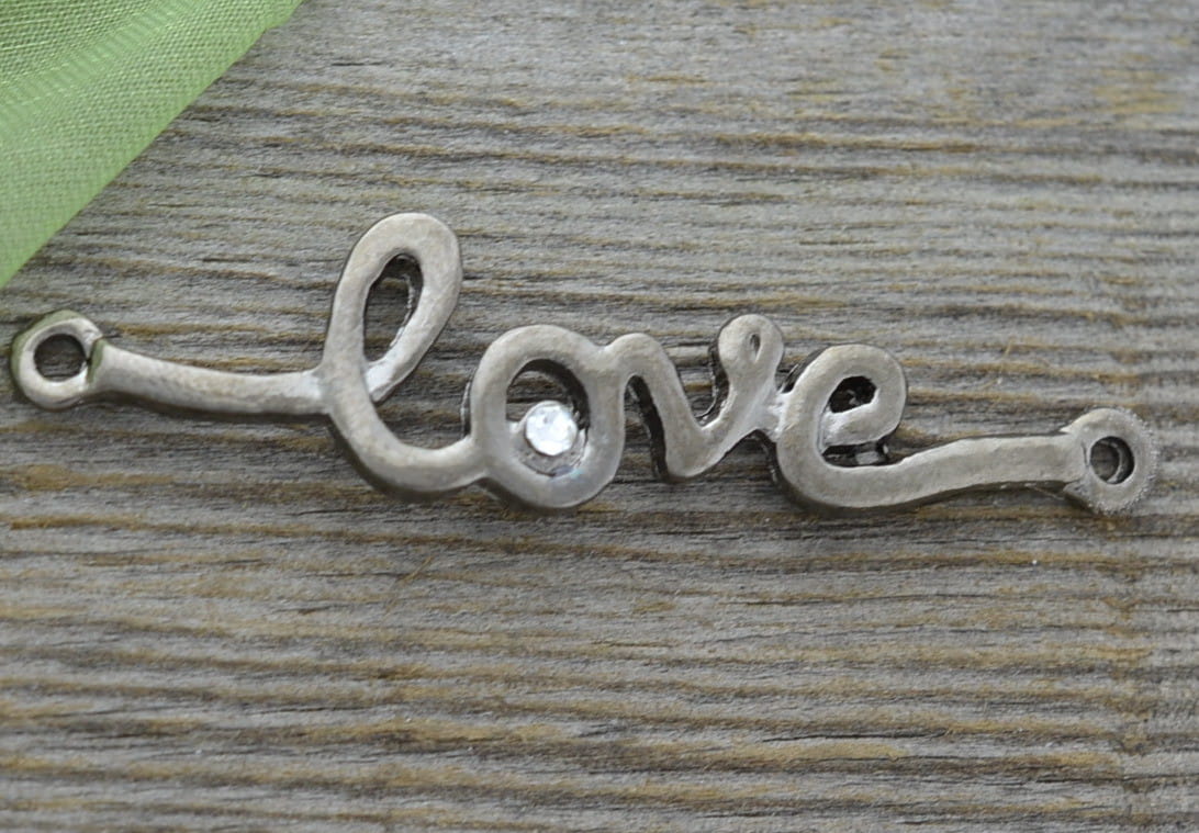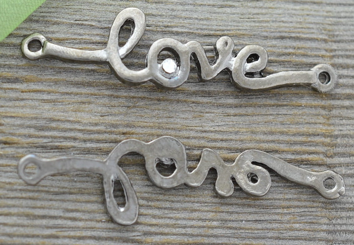 [c1204] Łącznik napis 'love' z cyrkonią czarny