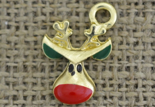 Opis: Zawieszka emaliowana w kształcie głowy Rudolfa