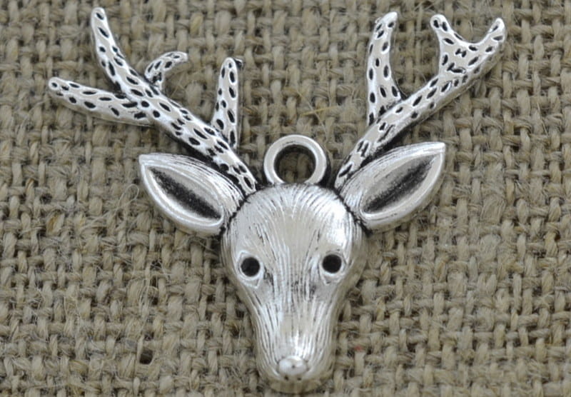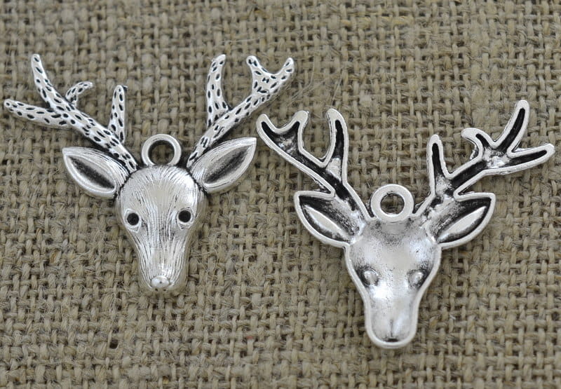 [ś07416] Zawieszka głowa renifera 31*37mm srebrna