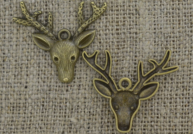 [ś07424] Zawieszka głowa renifera 31*37mm brąz