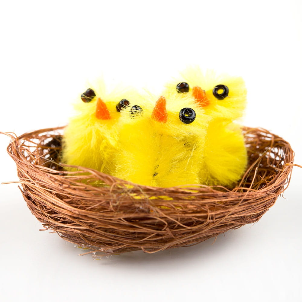 [w0305] Trzy kurczaczki wielkanocne w gniazdku