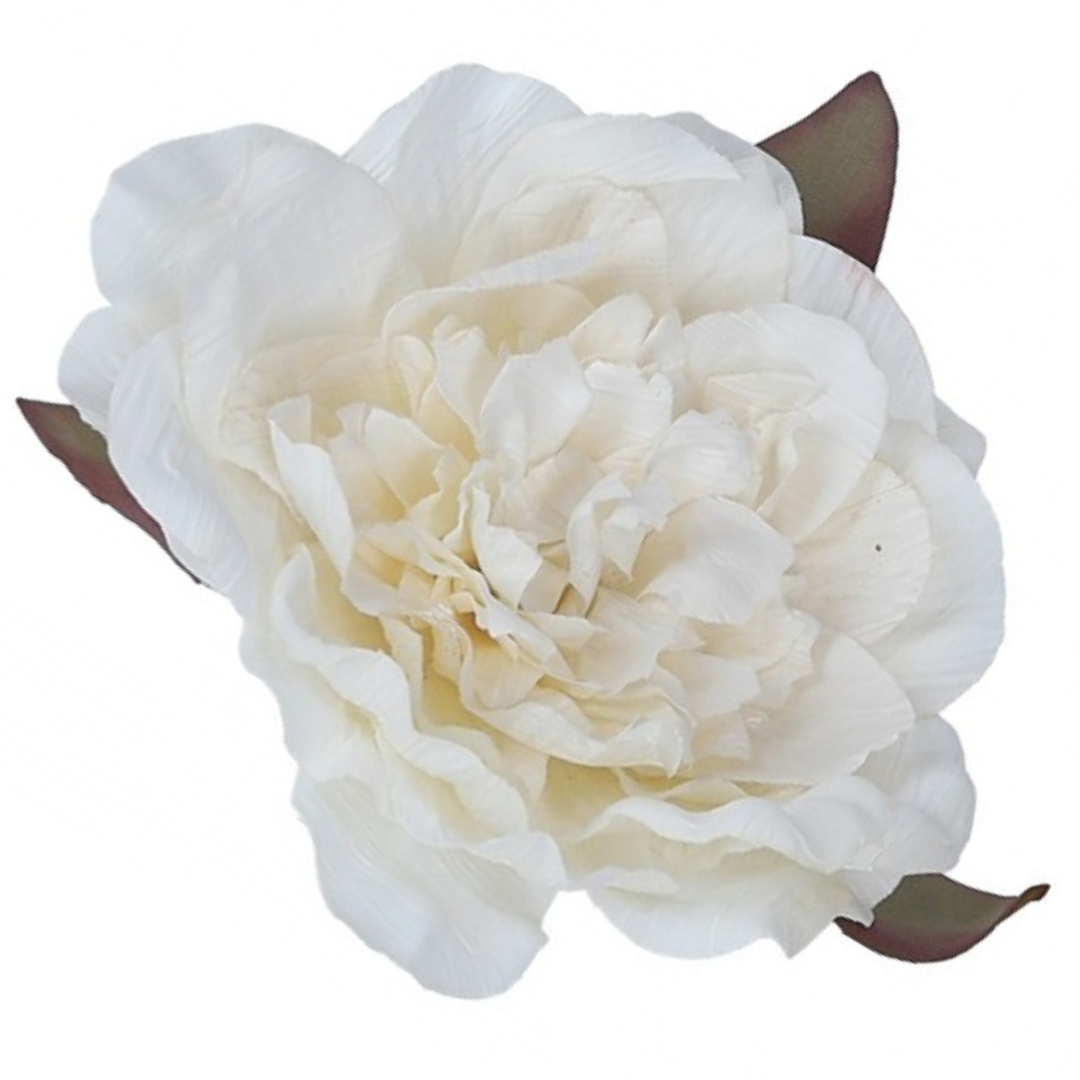 [w04106] Róża kameliowa główka 10cm z listkami kremowa