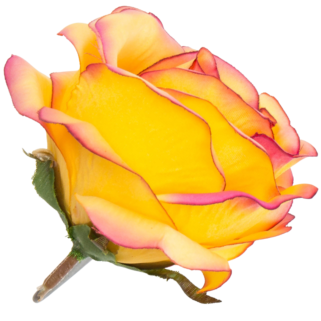[w04201] Róża główka 9cm ciemnożółta z różowym brzegiem