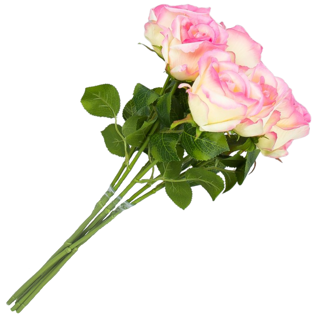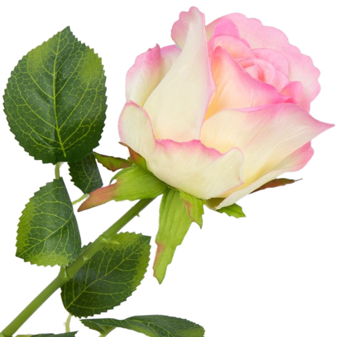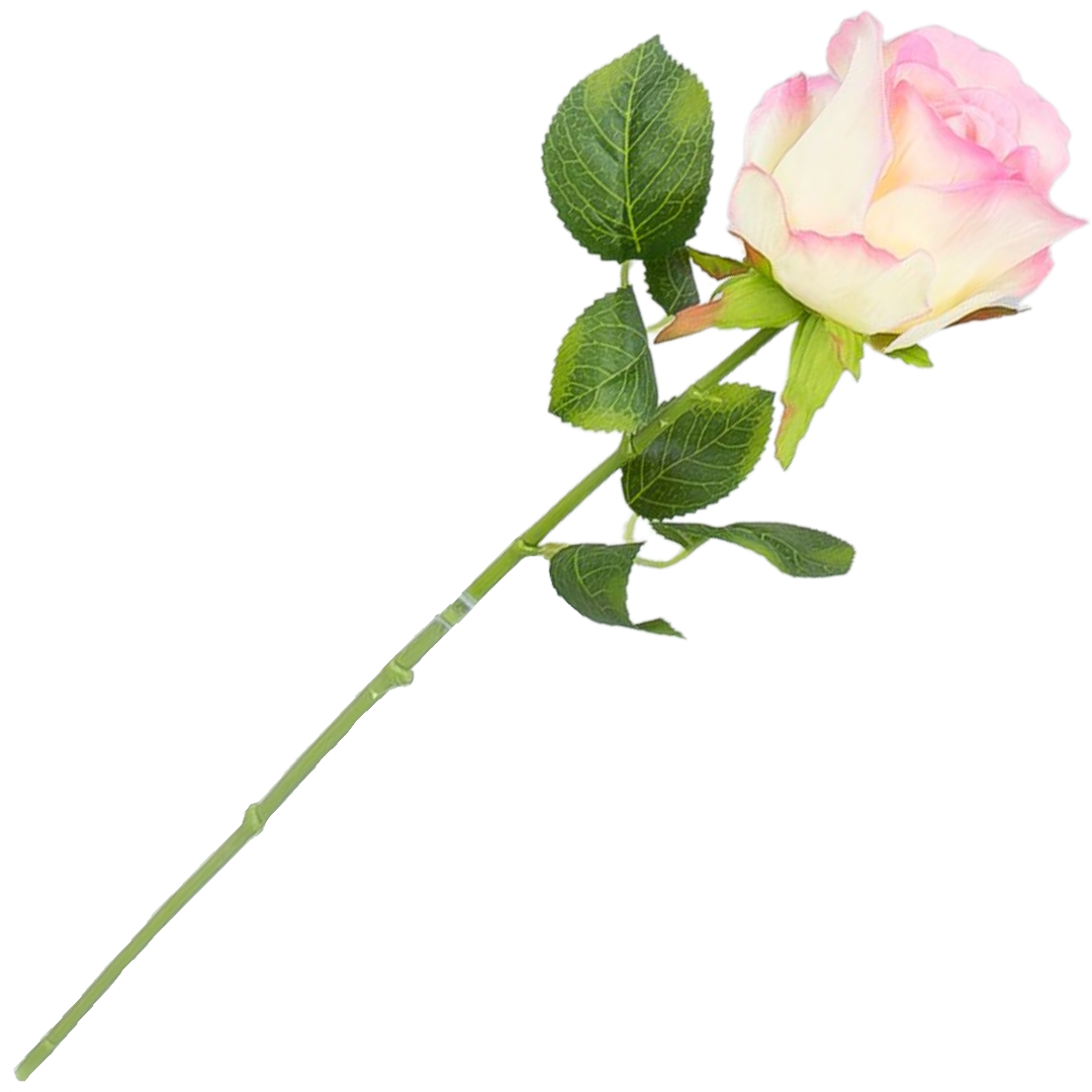 [w0523] Róża na gałązce 47cm kremowo-różowa