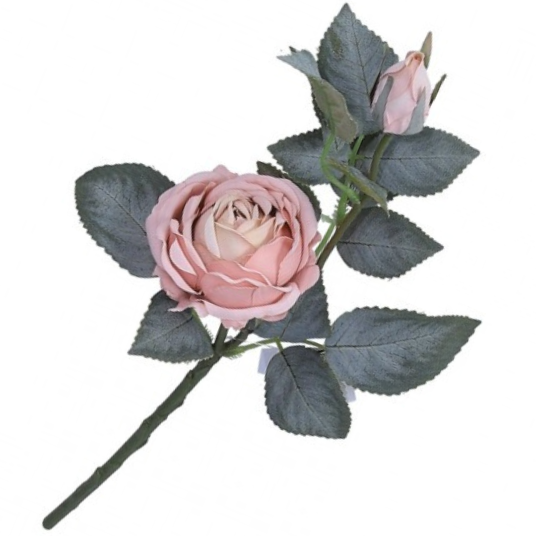 [w0556] Róża na gałązce z pąkiem 42cm pudrowo różowa