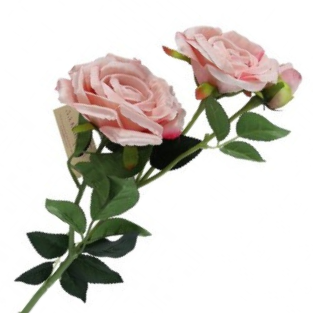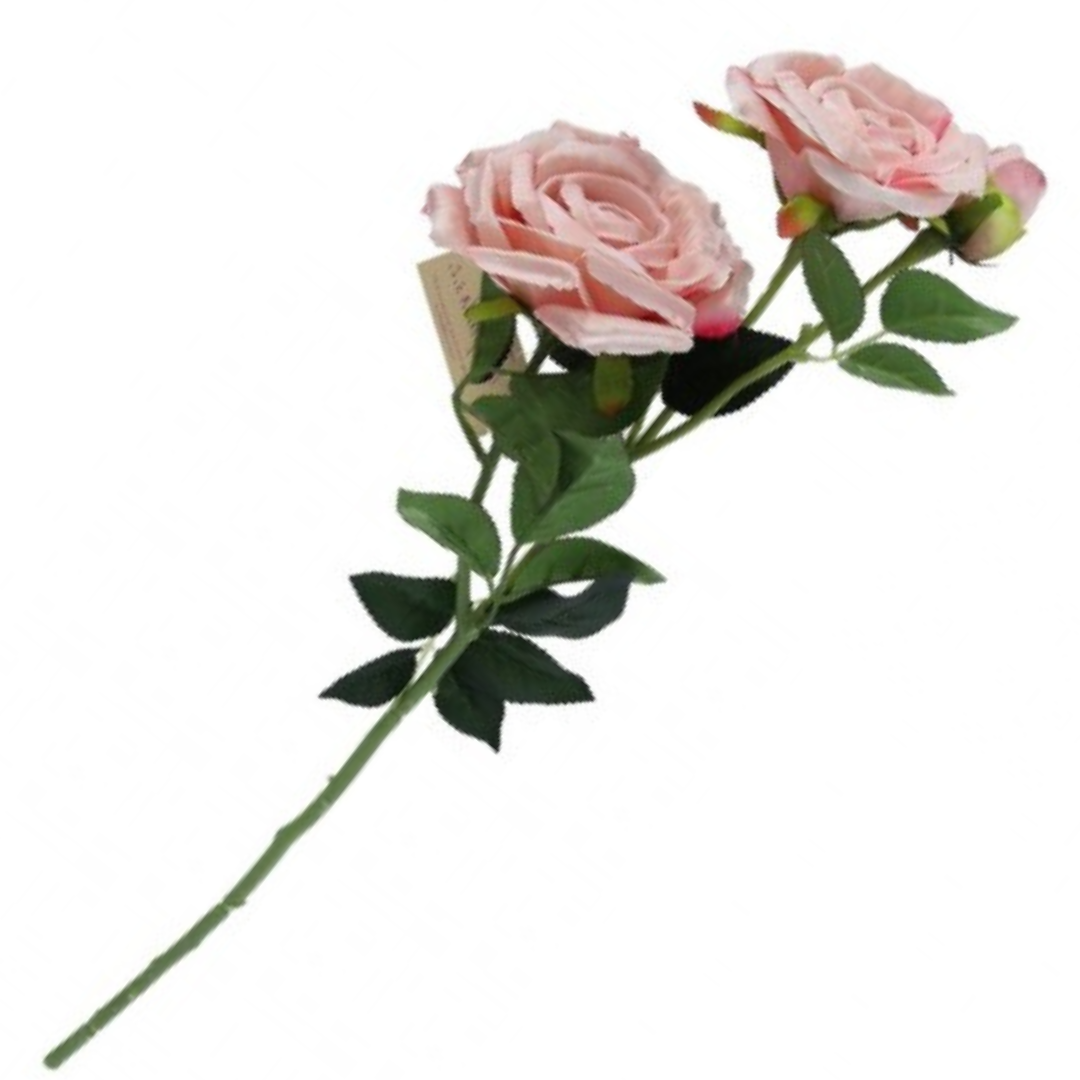[w0557] Róże na gałązce 2 główki z pąkiem 60cm bladoróżowe