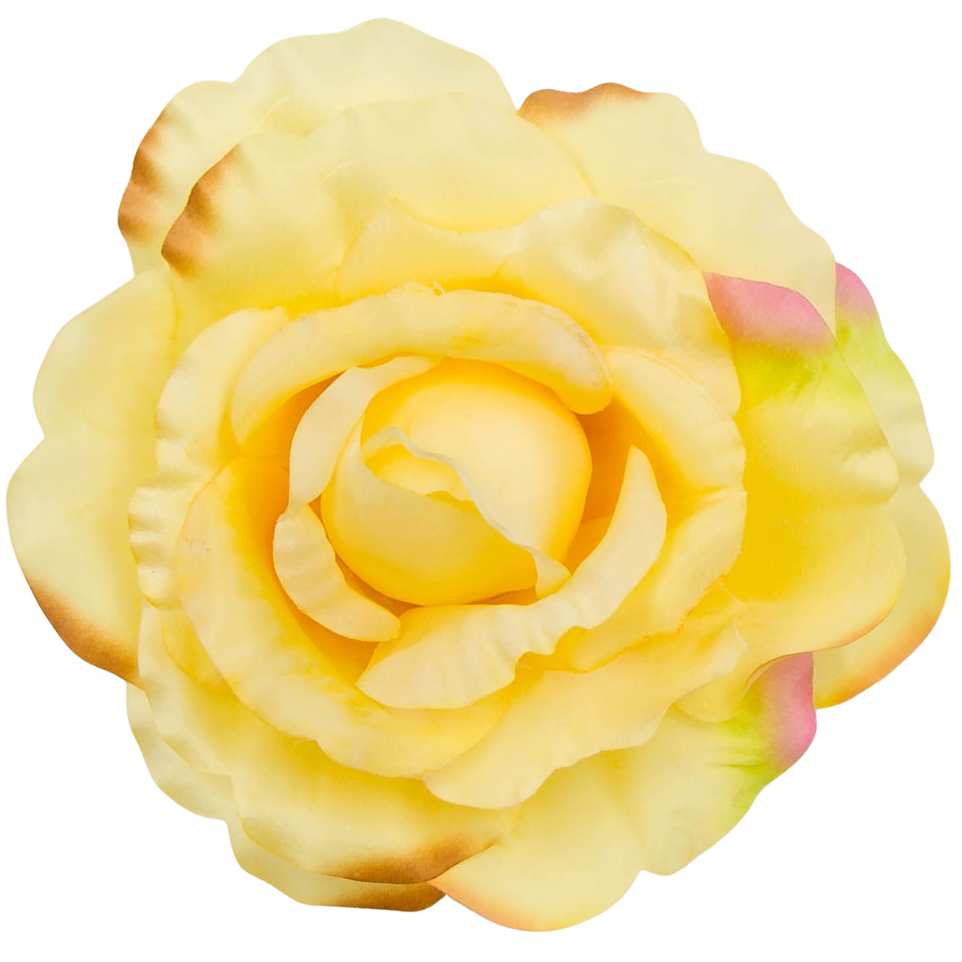[w0572] Główka kwiatowa róża duża 20cm pastelowo-żółta cieniowana