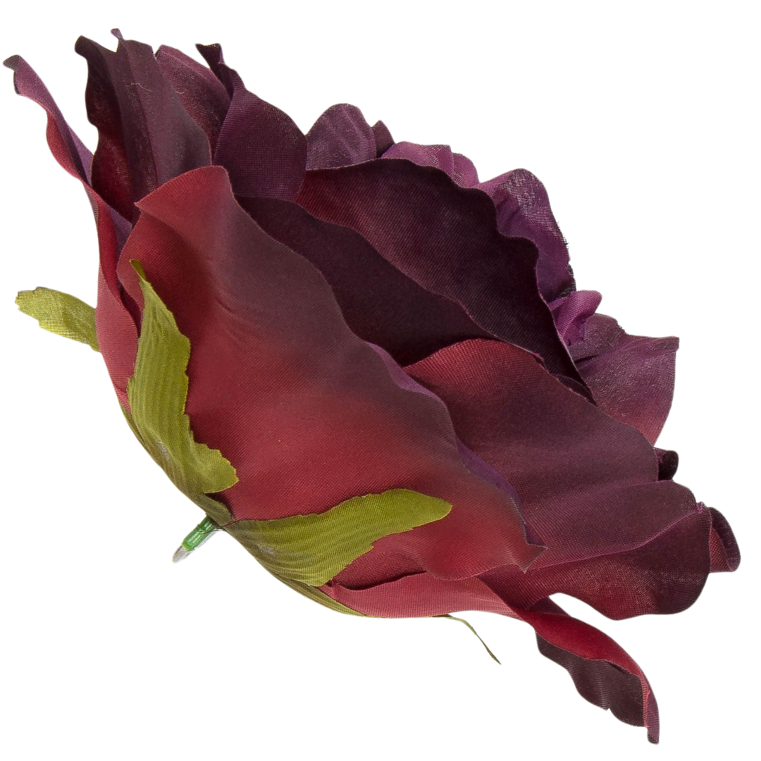 [w0582] Główka kwiatowa róża duża 20cm bakłażanowo-bordowa