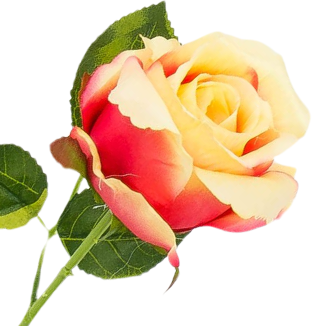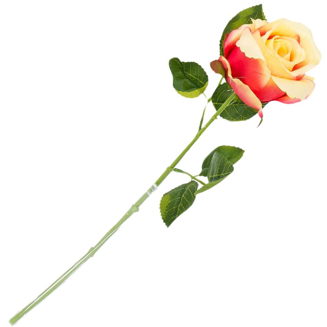 [w0588] Róża na gałązce 47cm karminowo-słomkowa