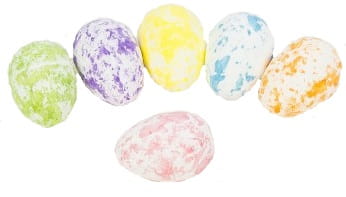 [w13008] Jajka nakrapiane 3x4cm białe w plamki kolorowe 24szt
