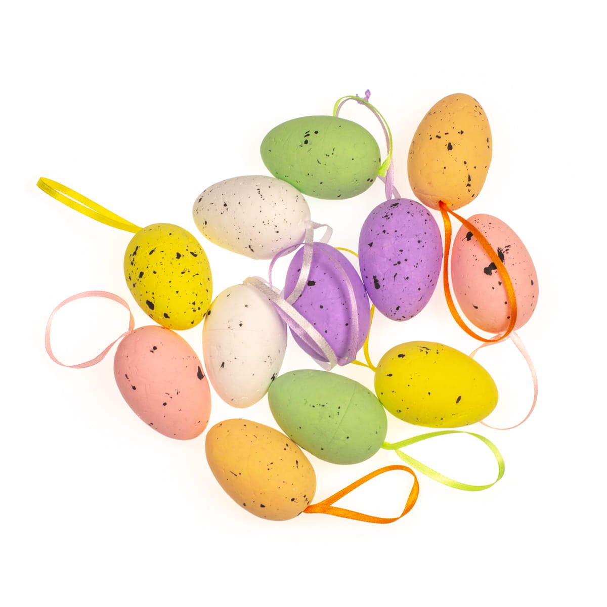 [w13011] Jajka nakrapiane z zawieszkami 3x5cm kolorowe 18szt