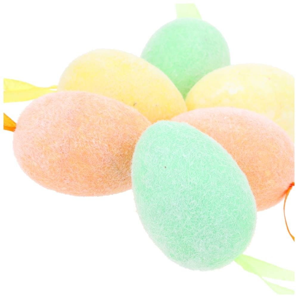 [w15005] Jajka z zawieszkami 5x7cm żółte, zielone i pomarańczowe 6szt